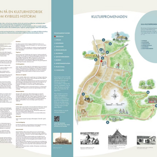 Kvibille ville lyfta kulturarvet i sin bygd och anlitade mig för att ta fram content för detta. En vandringsled mellan de kulturhistoriskt intressanta platserna togs fram, och skyltmaterial till detta. Då Kvibille under flera hundra år var platsen för häradstinget och Hallands sista avrättning ägde rum där, var fängelsecellen ett fokus. Tillsammans skapade vi ett litet iscensatt museum i källaren under under tingshuset man kan besöka. Den siste dödsdömde fången, Johan Qvick, skulpterade jag i skala 1:1 och formgav cellen. Broschyr och skyltar likaså.